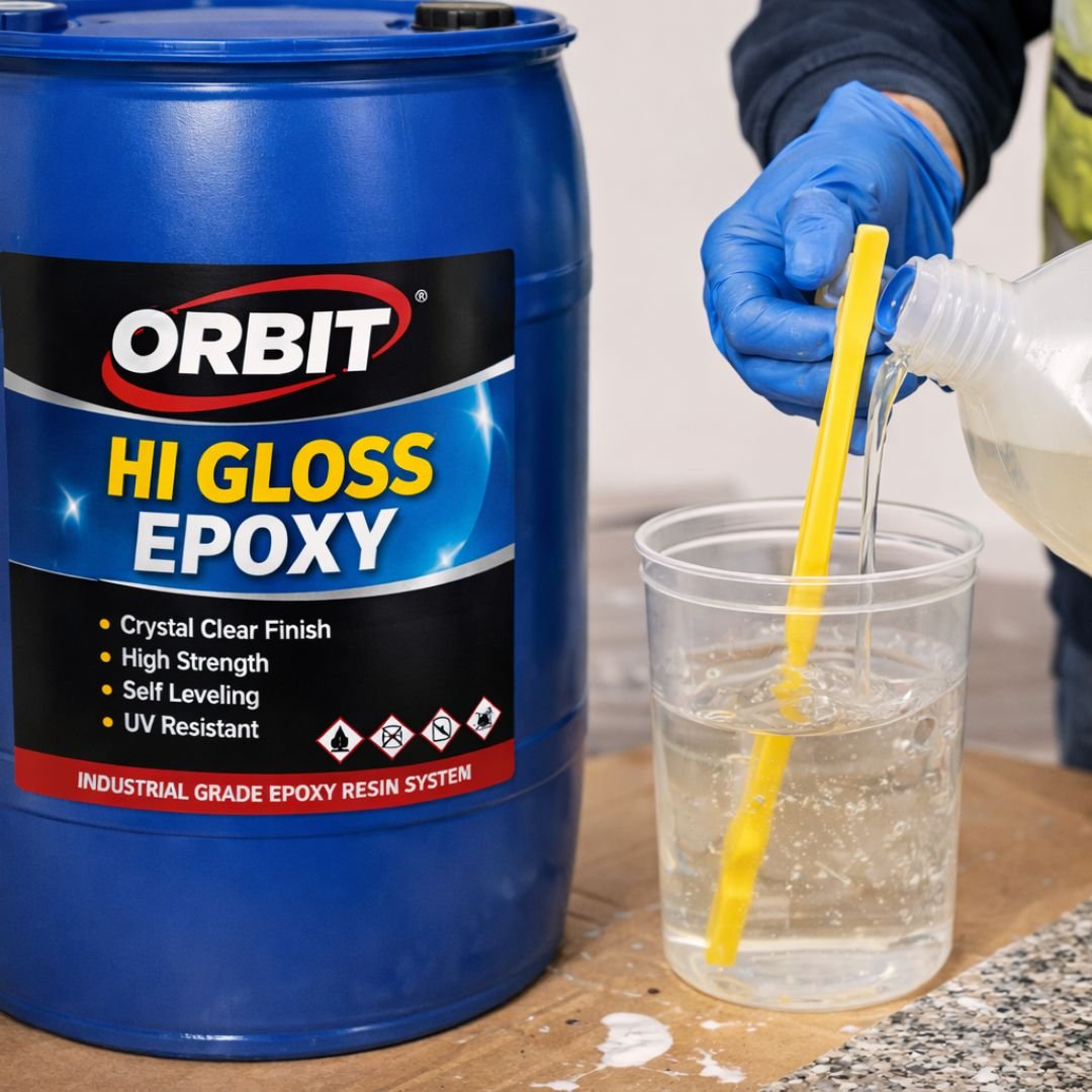 Orbit Hi Gloss Epoxy is a premium industrial-grade epoxy resin system designed to deliver an ultra-high gloss, mirror-like finish with exceptional durability for commercial and industrial environments.