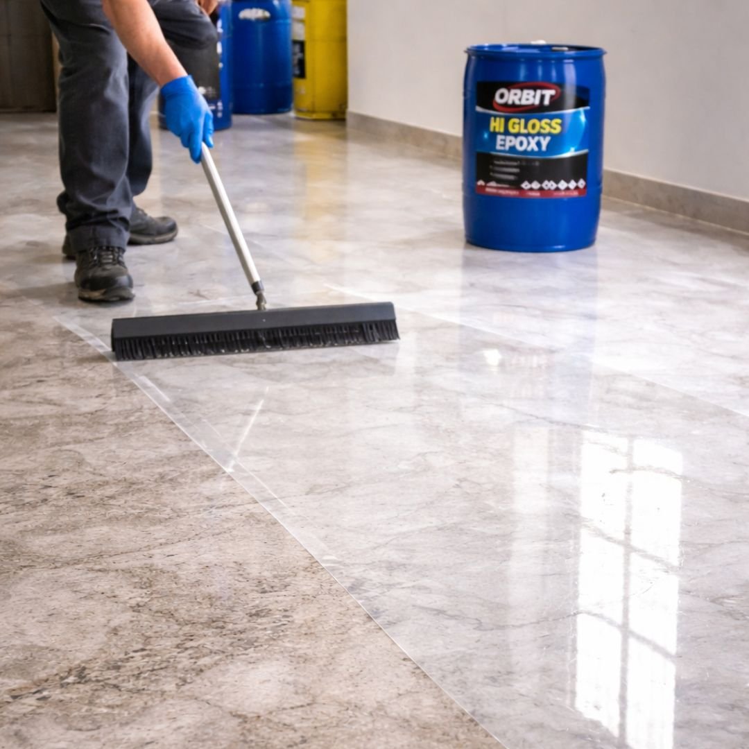Its optimized viscosity ensures uniform film thickness and efficient application across expansive floor areas. Orbit Hi Gloss Epoxy offers consistent curing behavior and industrial-grade batch reliability suitable for contractors and OEM coating systems.